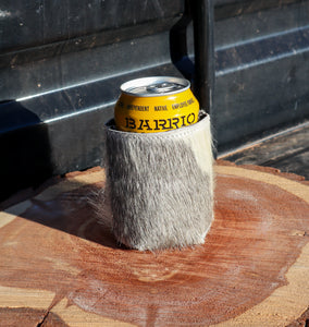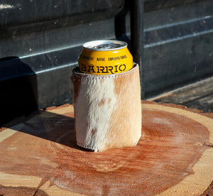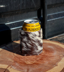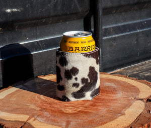 Grab a cold drink in style with our cowhide cowboy koozie.